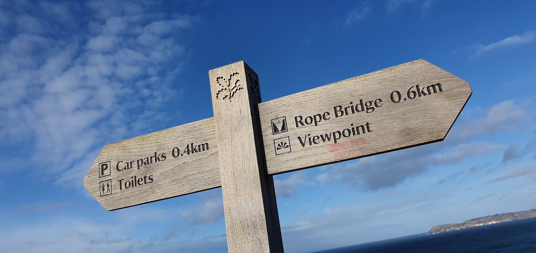 Weil The Dark Hedges nur ein kurzer Stopp war und alles sehr nah hier oben beinander liegt, fahren wir noch zur Seilbrücke. Diese Seilbrücke ist definitiv eine der 5 coolen Sehenswürdigkeiten in Nordirland. Wir halten am Visitor Centre und essen dort erstmal etwas zu Mittag. Gut gestärkt geht es dann Richtung Seilbrücke. Alleine der Weg dorthin ist diese Tour wert. Entlang der Klippen, aber natürlich gesichert, wirst du mit einer grandiosen Aussicht belohnt.