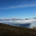 Wir hatten das nicht und machten uns also gleich weiter auf den Weg nach Scheidegg, wo wir eine kurze Rast einlegten. Hier waren wir bereits auf 2000 m und somit über dem Nebelfeld. Man hat hier eine tolle Aussicht und es ist somit ein idealer Platz zum Rasten. Ich habe bisher diese Tour nur im Winter gemacht. Umso überraschter war ich von den tollen Herbstfarben, die diese Gegend um das Weisshorn fast schon vulkanisch aussehen lassen. Teilweise kam man sich vor wie auf Island.