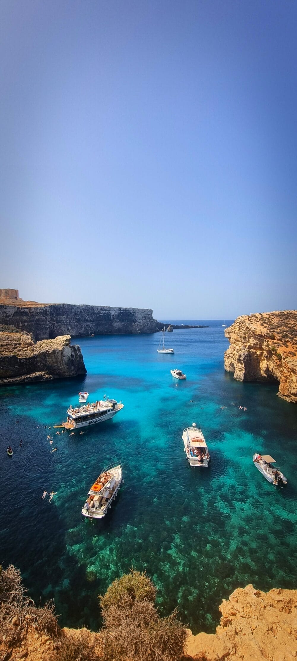 Ein Taxi Boot für ein paar EUR reicht übrigens, um nach Comino zu kommen. Meistens kommen die kleineren Boote eben auch in Comino an. Du brauchst keine Tagestour für 70 EUR pro Person zu buchen, mit Pool und Restaurant auf dem Boot. Das lenkt nur ab am Ende und du bist ewig unterwegs, bis du mal auf Comino und der Blaue Lagune Malta ankommst.