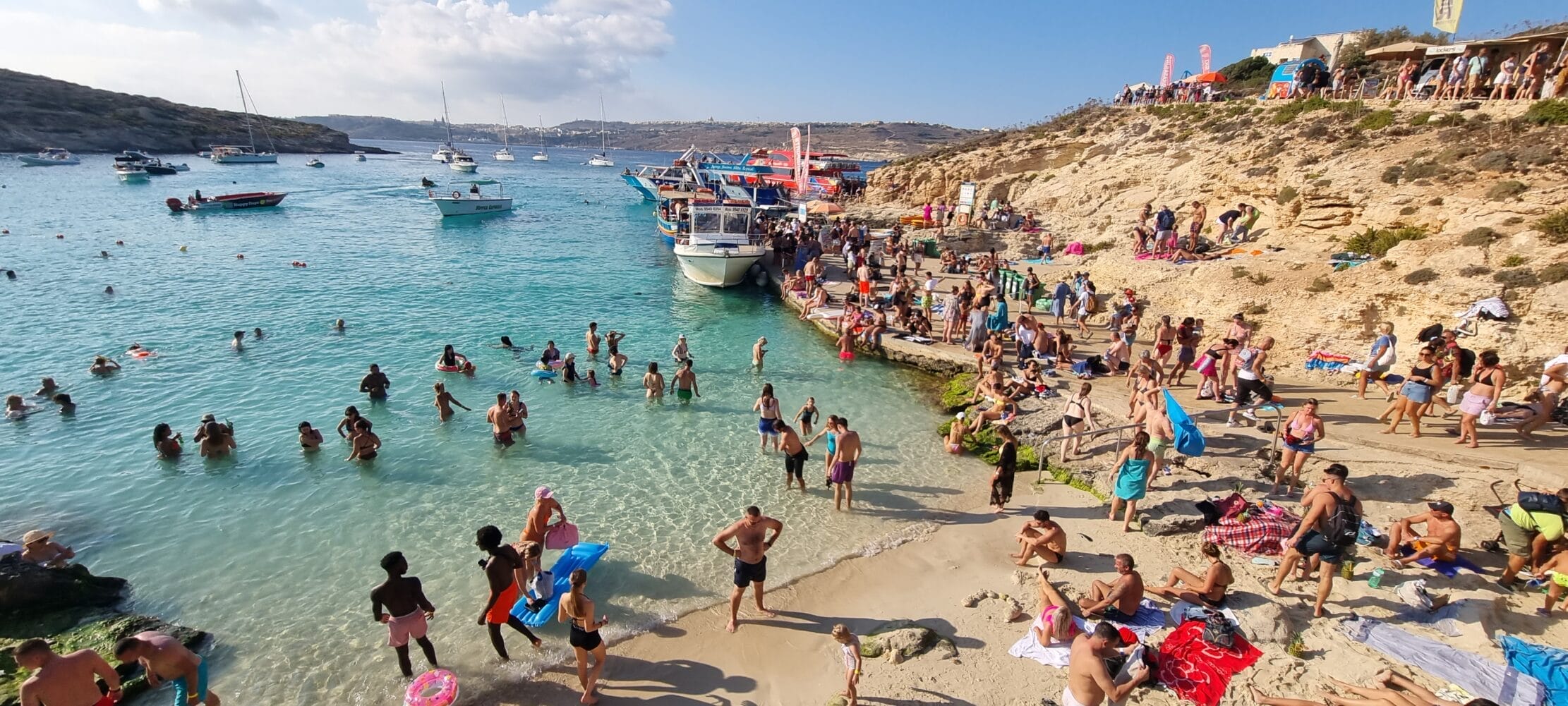 Vom 1. Januar bis 31. Dezember eines jeden Jahres ist die Insel meistens sehr gut besucht. Dazwischen geht’s und du bist eher alleine auf der Insel. Wenn es richtig tolles Wetter ist, was an 300 Tagen im Jahr der Fall ist, sind auf Comino etwa 2’000 Menschen unterwegs.