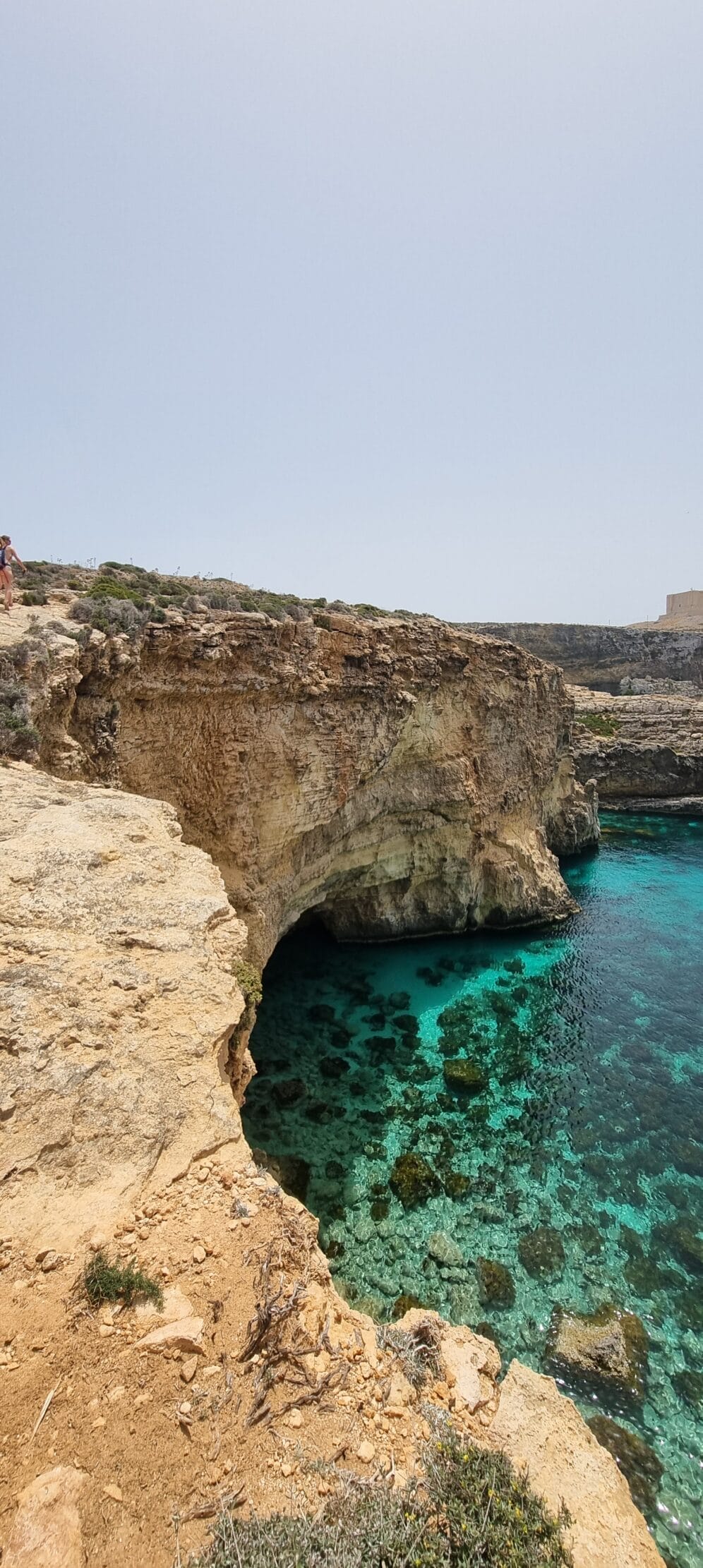 Die Wanderwege sind toll, führen manchmal an exponierten Stellen vorbei 🤔 und grundsätzlich bist du überall auf der Insel immer „Back on Track“. Ein Verlaufen ist schier unmöglich. Alle Wege führen zurück zur Blauen Lagune Malta, dort wo deine Reise auf Comino gestartet ist. Solltest du dich dennoch verlaufen, halte Ausschau nach dem St. Mary´s Tower. Dieser wurde im 15. Jahrhundert errichtet, was absolut irrrelevant ist, aber für 2 EUR Eintritt kannst du dort auf’s Dach steigen und hast eine wunderbare Aussicht über die ganze Insel. Das ist perfekt, um dich nochmal neu orientieren zu können.