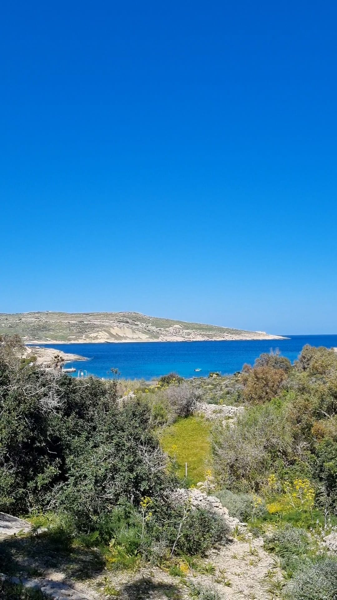 In Comino gibt es eine Handvoll Bäume, die etwas Schatten für eine Verschnaufpause bieten. Wanderwege im Schatten, das wäre purer Luxus und solltest du hier nicht erwarten. Dafür hast du zu jederzeit eine freie 360° Aussicht. Klarer Vorteil.