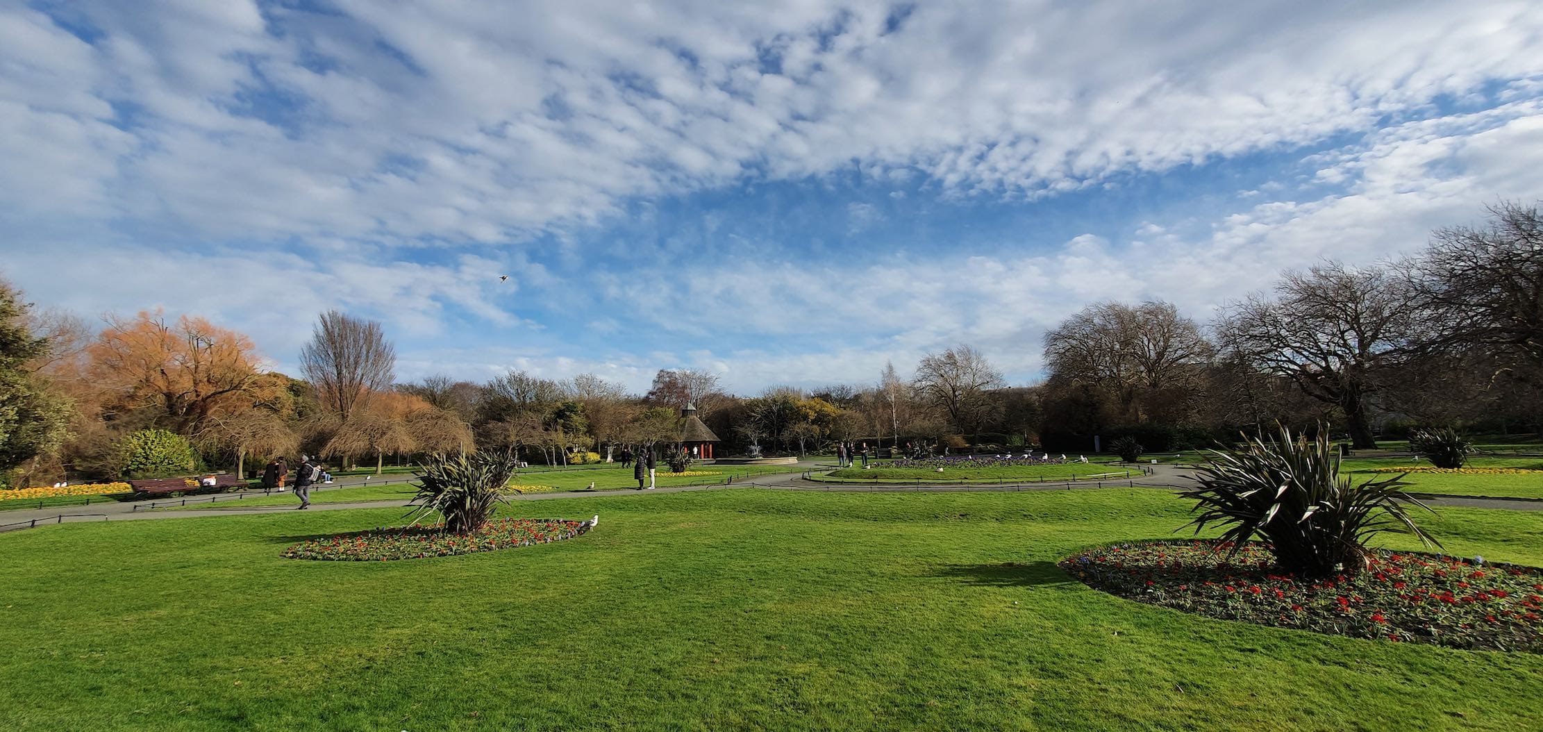 Trotz der eher kühlen Temperaturen Anfang März, tummeln sich bereits einige Leute auf den saftig grünen Wiesen. Wir verschnaufen kurz, tanken etwas Energie in Form von Sonnenstrahlen und Ruhe und machen uns dann auf zum Stephen’s Green Shopping Center, das natürlich direkt neben dem Park liegt.