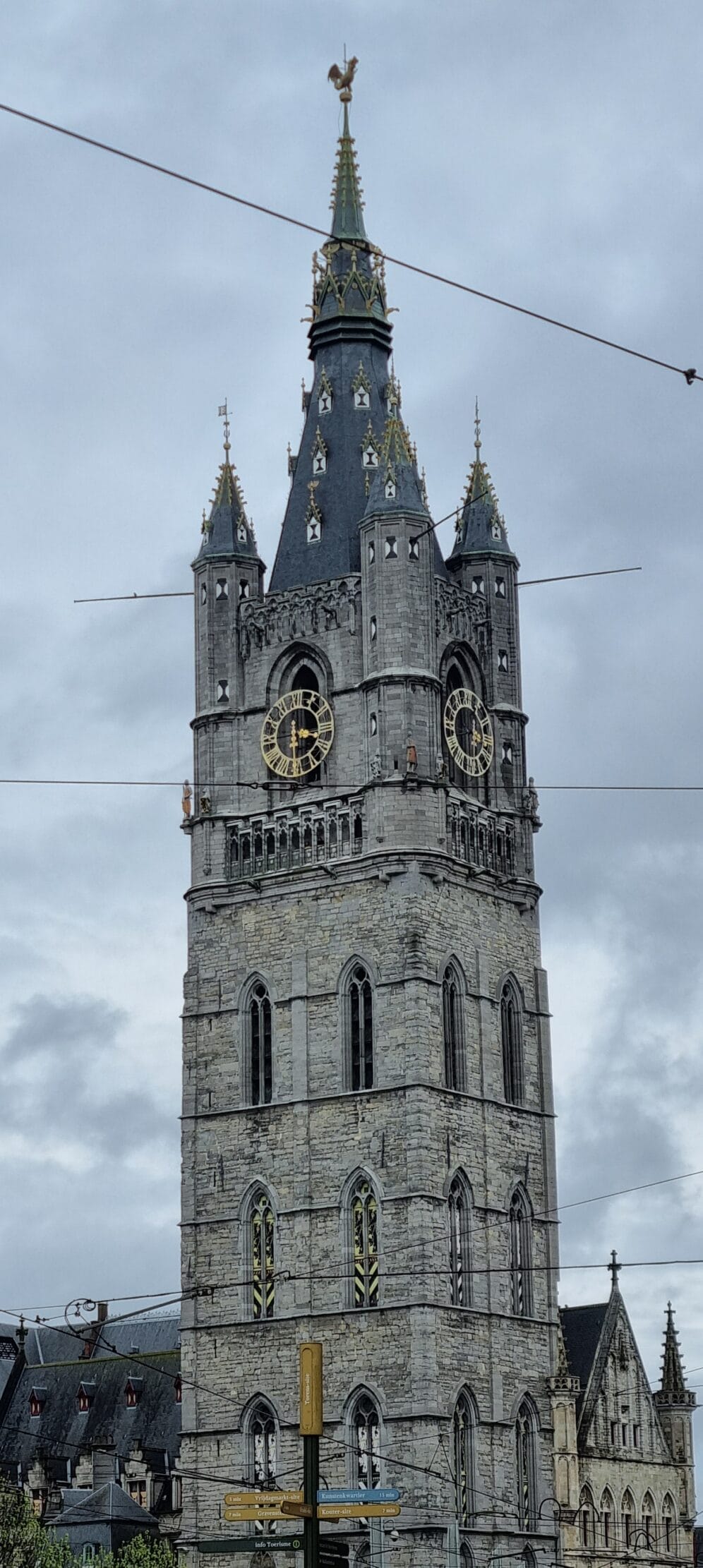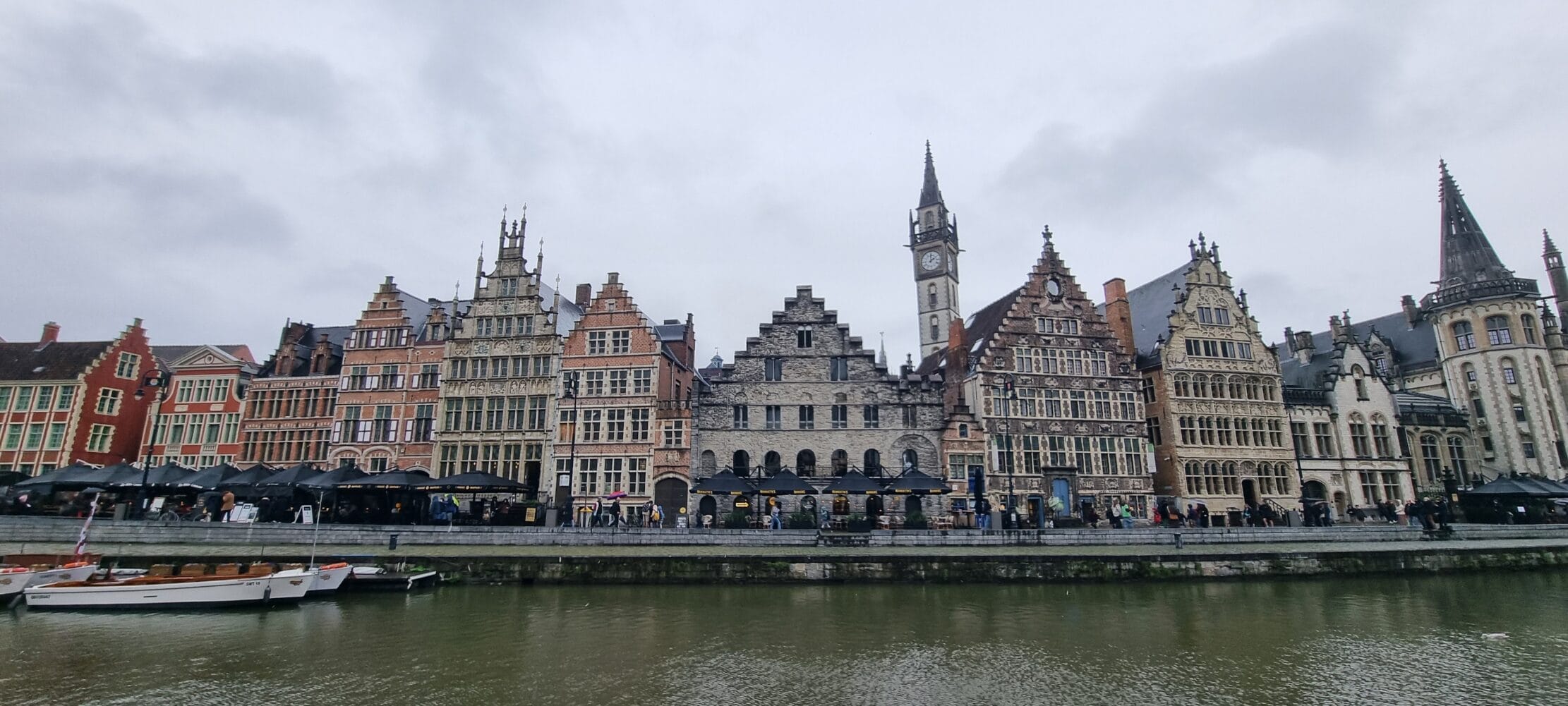 Nachdem wir uns mit wärmeren Jacken und besseren Schuhe eingedeckt haben, geht es nach Gent. Hier wird es am Morgen regnen. Das haben wir recherchiert. Tatsächlich regnet es die erste Stunde. Es ist kalter Regen, ganz ungewohnt. Wir machen daher erstmal eine Bootstour und lassen uns über die Kanäle der Stadt fahren.