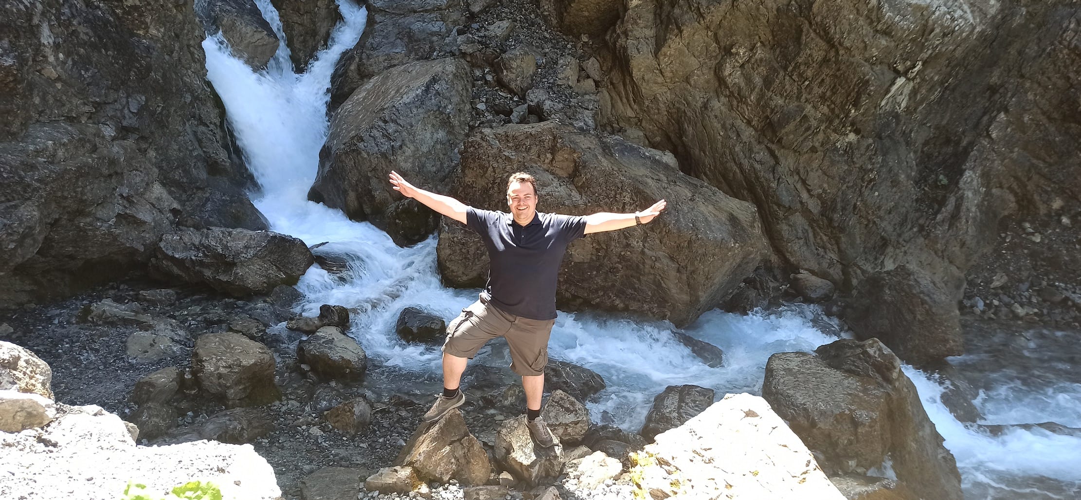 Da es bereits soviel zu entdecken hab, machen wir gleich nach der Abbiegung Richtung Wasserfall ein ausgiebiges Picknick, direkt am Fluss. Die Kids können dort nämlich noch ein wenig spielen. Da Sertig auf 1850 m liegt, ist es hier mit ca. 18 Grad Mitte Juli und direkt am Wasser relativ kühl und deshalb gehen wir auch nach dem Essen weiter.