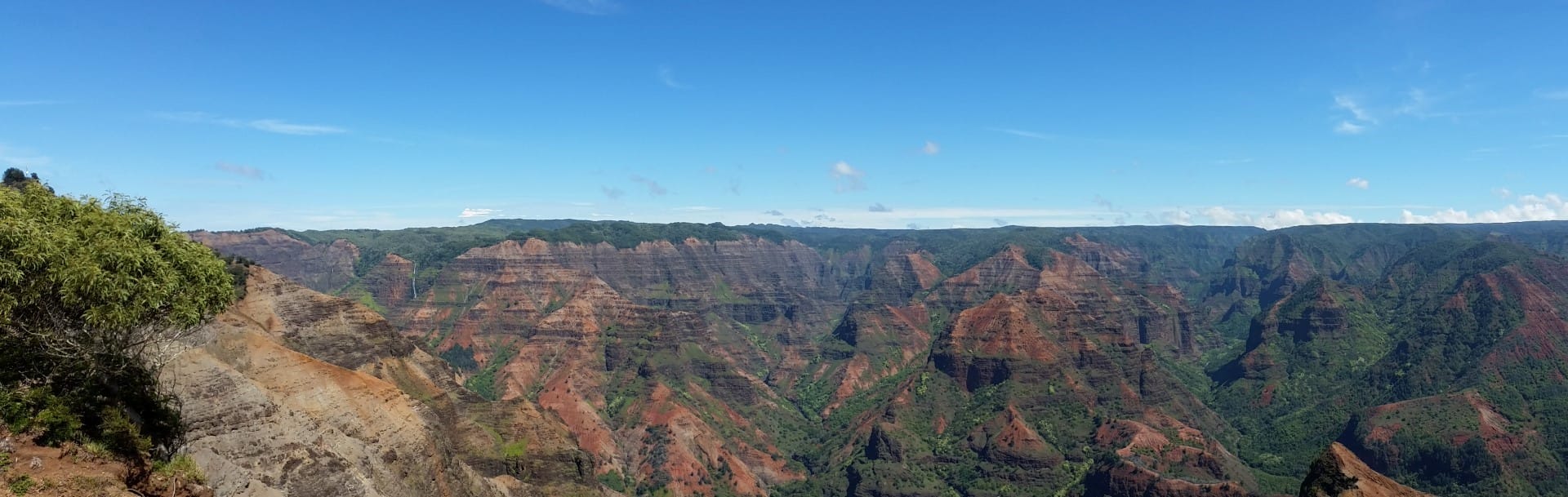 Hawaii Tag 25: Heute ging es zum Waimea Canyon, dem Grand Canyon des Pazifiks. Schon die Fahrt dorthin war beeindruckend. Die Gegend ist so schön gruen,