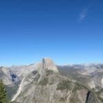Zurück im Dorf und am Auto, fuhren wir zum Glacier Point. Eineinhalb Stunden entfernt und auf 2200 m Höhe. Die Aussicht hier war toll. Man sah den mächtigen El Capitan, den groessten Felsen, der ueber den Park wacht. Jedoch war es schwierig, einen freien Spot zu finden, um Bilder zu machen. Unglaublich viele Leute waren dort. Dafür konnte man hier Souvenirs kaufen und zu Mittag essen, und sogar ins Internet gehen. Leider war Dennis traurig, da er Helene’s Schweizer Messer benutzen musste. Seines hatte sie ja weggeworfen. Hmpf….
