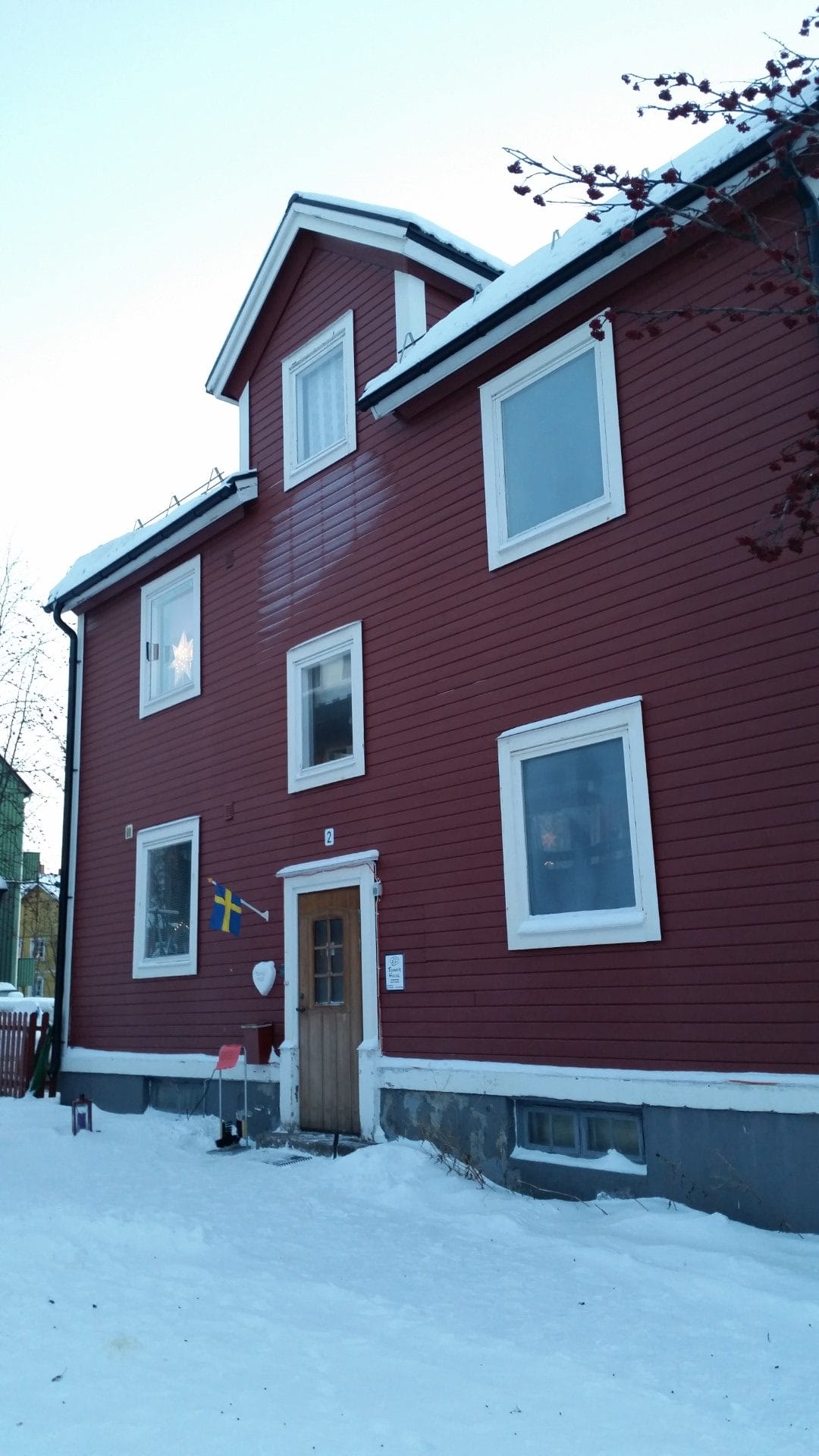 Diese beiden Orte sind das Outdoor Mekka von Schweden’s Norden. Es gibt nichts, das man hier nicht tun könnte. Aber zunächst, suche ich mal die Jugendherberge. Es ist bereits 16 Uhr und natürlich stockdunkel im Dezember zu dieser Uhrzeit. Laut Navi bin ich schon zweimal an der Jugendherberge vorbeigefahren. Und in der Tat, etwas zurückgesetzt finde ich sie dann auch. Warum hier alles verschlossen und dunkel ist, erfahre ich nach einem Anruf beim Betreiber. Ich sei der einzige Gast hier und hätte das ganze Gelände für mich alleine. Uhhh…so war das nicht geplant. Da es nicht mal eine Rezeption gibt, entscheide ich mich, in das einzige Hotel in Björkliden zu wechseln. Im Hotel Fjället bekomme ich ein Einzelzimmer mit üppigem Frühstücksbuffet für die nächsten 8 Tage. Das fühlt sich alles viel besser an, als die dunkle und kalte Jugendherberge.