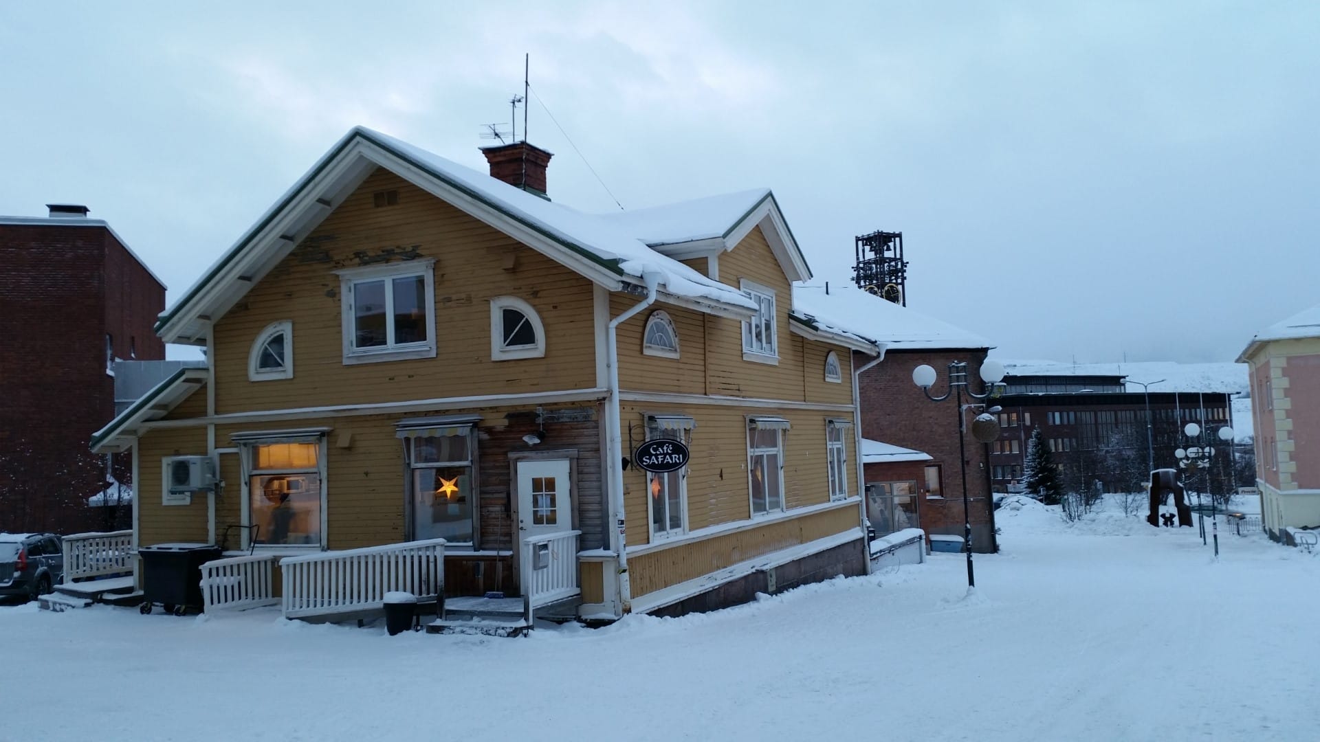 Es ist schön winterlich kalt, dunkel und weiss draussen. Da man uns in Island erzählt hat, dass man Polarlichter nur in absoluter Dunkelheit beobachten kann, laufe ich die ersten 3 Abende noch weiter aus der Stadt raus. Ich befinde mich nach einem Fussmarsch von ca. 40 Minuten auf dem Land, direkt hinter Kiruna. Hier stelle ich meine Kamera auf und warte….und warte….und warte….und warte….und warte….und nix ist zu sehen. Nur schwarzer Himmel, der Mond und ein paar Schneeflocken zwischendrin. So wird das nichts mit Polarlichter beobachten. Wie sich später herausstellt, hätte man die Polarlichter sogar in der Innenstadt bei Licht sehen können. Es gab einfach keine Aktivität zu der Zeit am Himmel. Aber dazu später mehr.