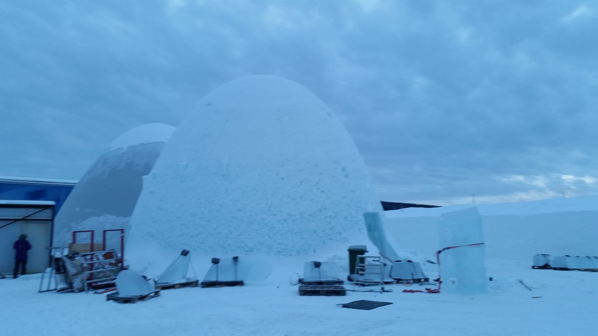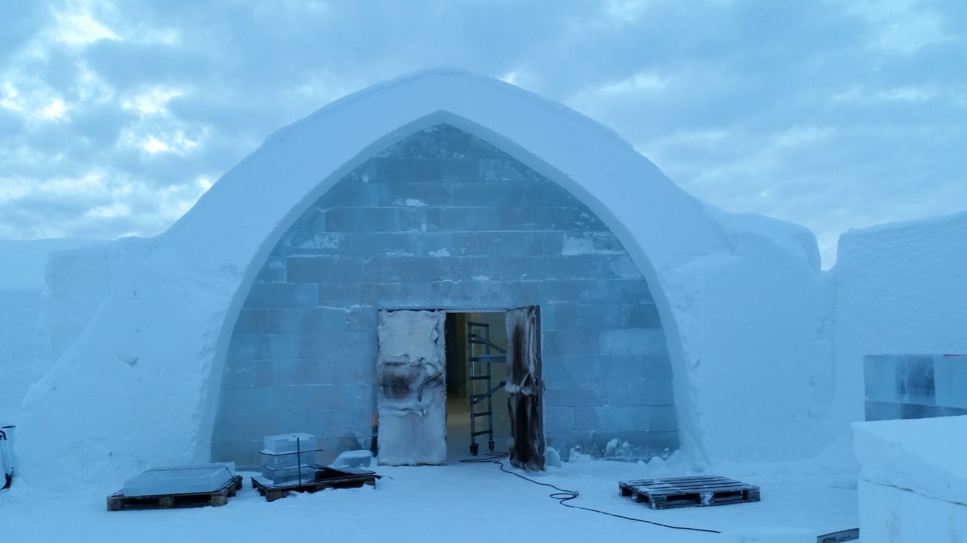 Enttäuscht, dass ich keine Polarlichter gesehen habe, aber total begeistert von Kiruna und der Umgebung, mach ich mich auf den Weg nach Björkliden. Hier habe ich mich in einer Jugendherberge eingemietet. Die nächsten 8 Tage verbringe ich dort. Auf dem Weg dorthin, fahre ich einen kleinen Schlenker und halte in Jukkasjärvi. Dort befindet sich das Ice Hotel, das jedes Jahr neu aufgebaut wird. Ich nehme an einer Führung teil und lasse mir alles genau erklären. Fantastisch, wie das Eis hergestellt wird und das Hotel von etlichen verschiedenen Architekten und Designern aus der ganzen Welt geplant und gebaut wird.