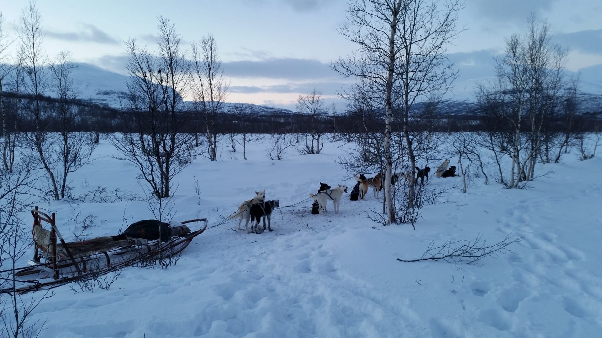 Ruhe finde ich hier dennoch, da es auch im Hotel nicht mehr als eine Handvoll Gäste hat. Ich verbringen die nächsten Tag mit entspannen, lesen und nichtstun. So zumindest der Plan. Am zweiten Tag machte ich mich dann auf nach Norwegen und schaute mir Narvik an, das direkt am Meer liegt. Hier gibt es nicht allzuviel zu sehen, ausserdem ist es hier eher grau und nass, statt dunkel und weiss. Daher fahre ich zurück und buche eine Schlittenhundetour für den nächsten Tag.