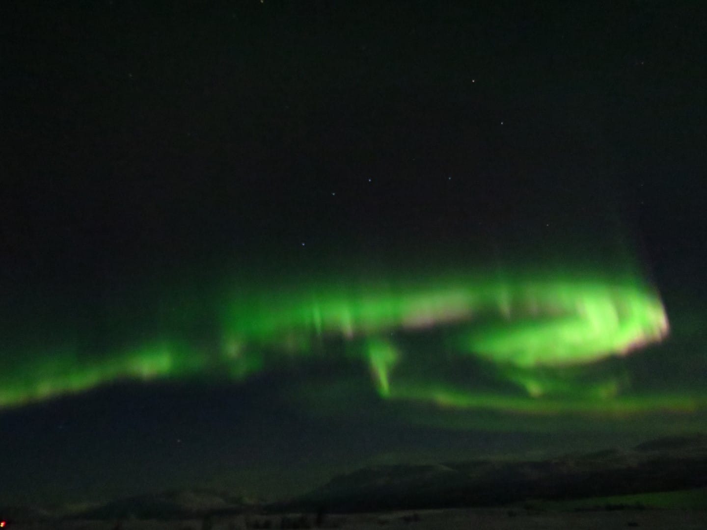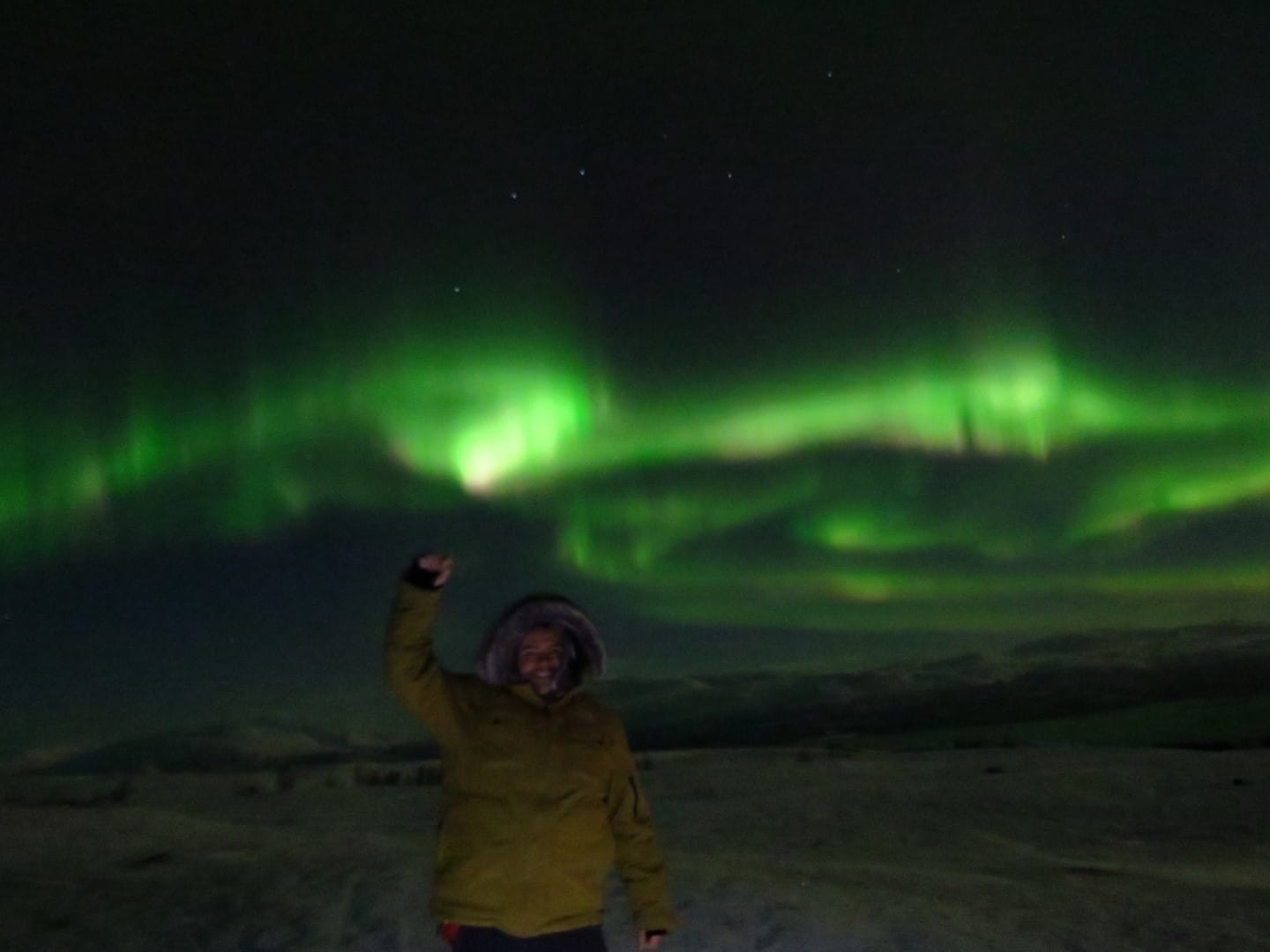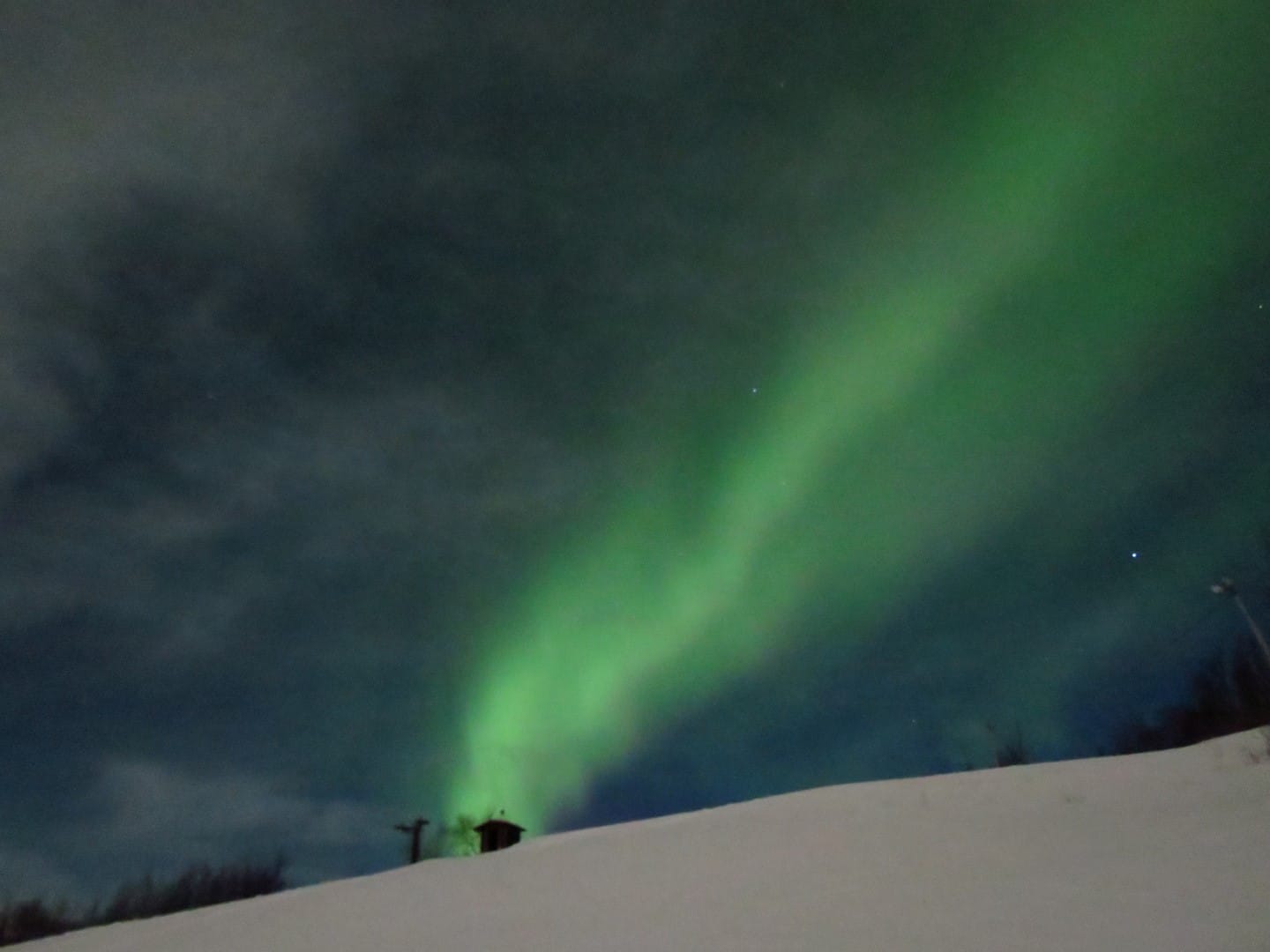 Gott sei Dank gibt es ein Restaurant hier oben. Es gibt Kekse und wieder Tee und Kaffee. Yummy. Aber man wird später auch belohnt. Der Himmel öffnet sich leicht und man hat freien Blick auf die Nordlichter.