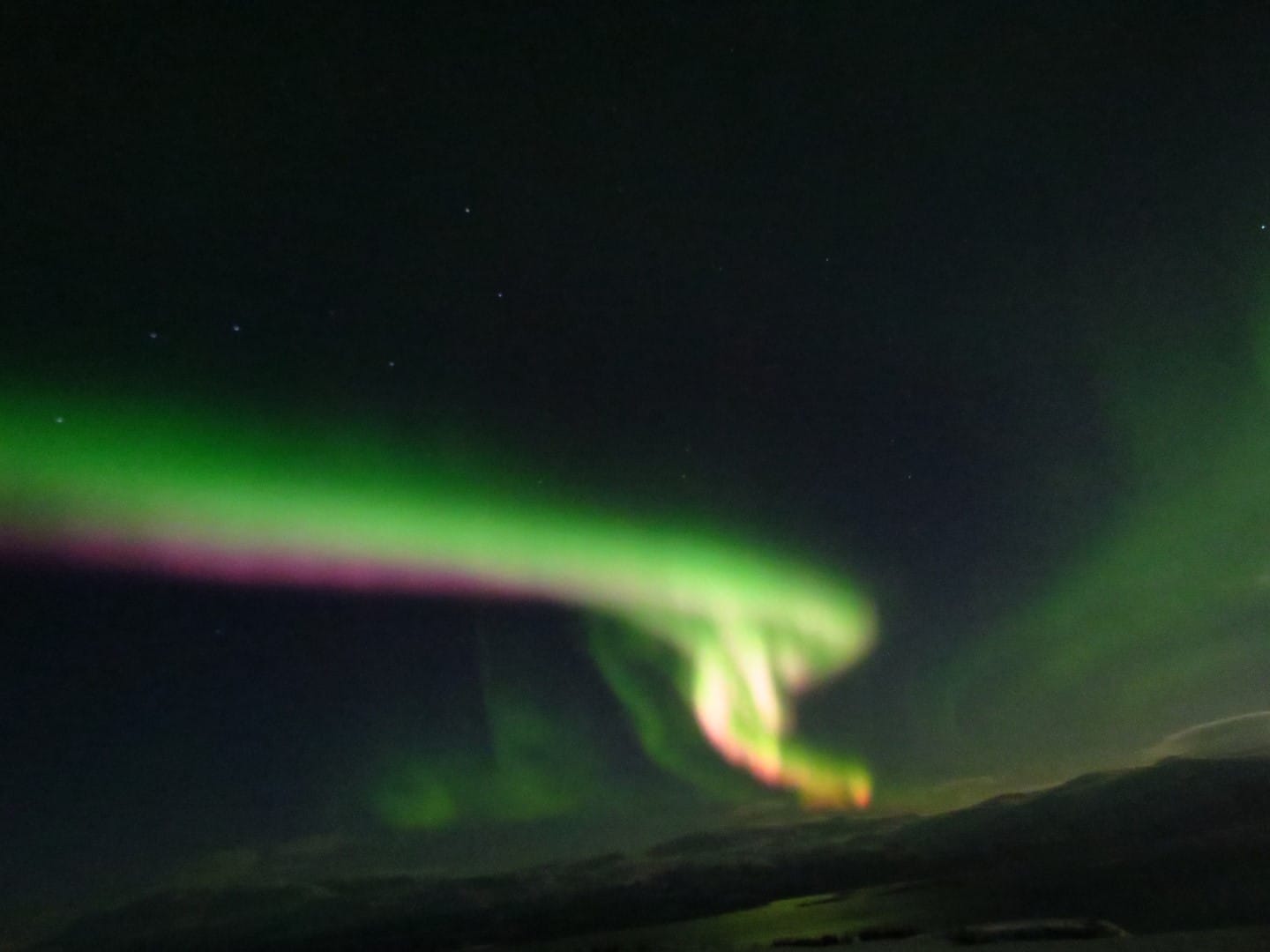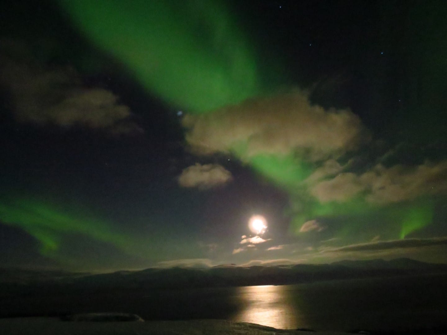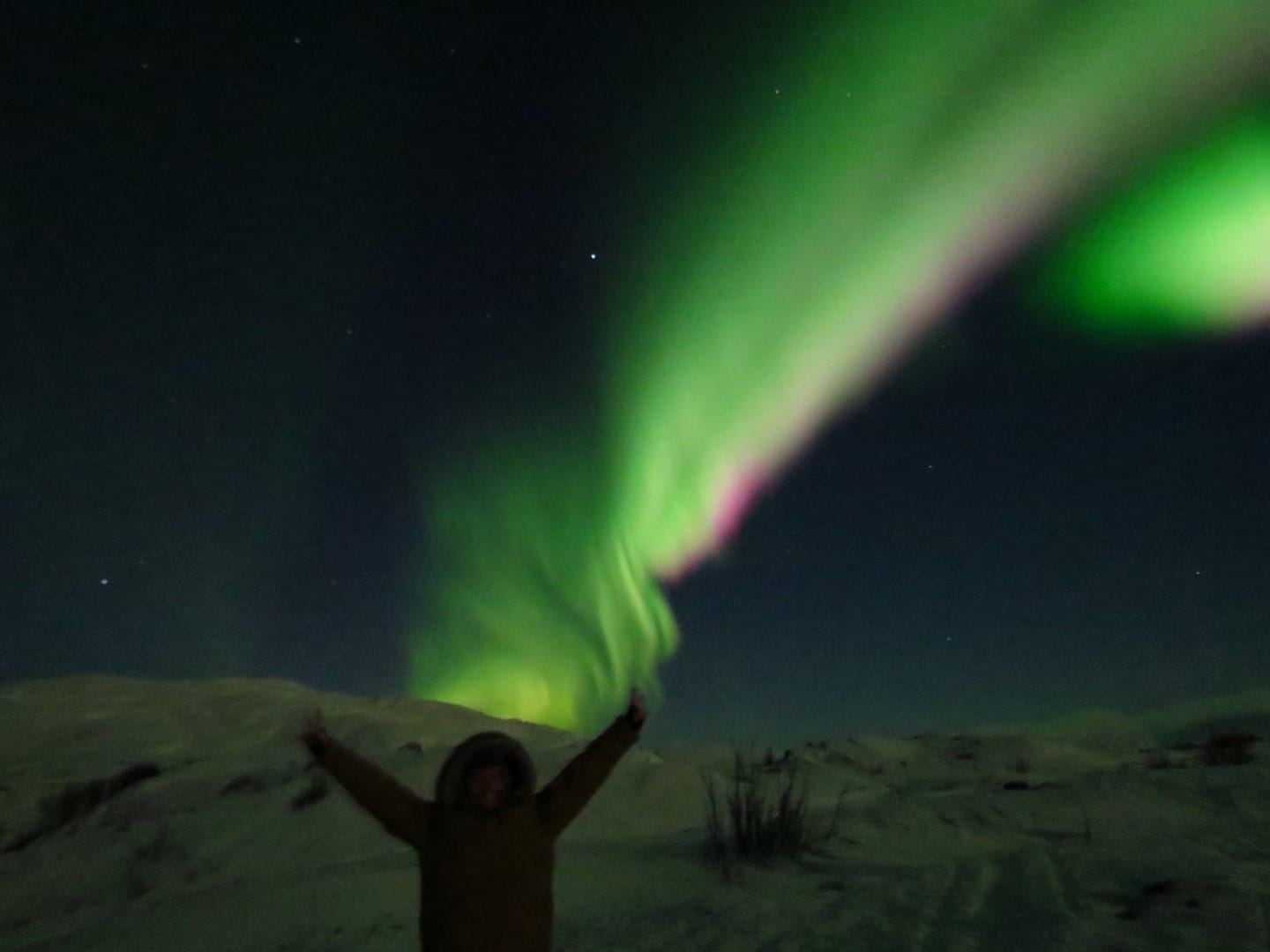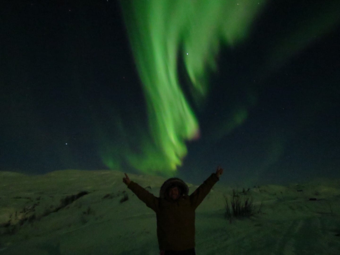Gott sei Dank gibt es ein Restaurant hier oben. Es gibt Kekse und wieder Tee und Kaffee. Yummy. Aber man wird später auch belohnt. Der Himmel öffnet sich leicht und man hat freien Blick auf die Nordlichter.