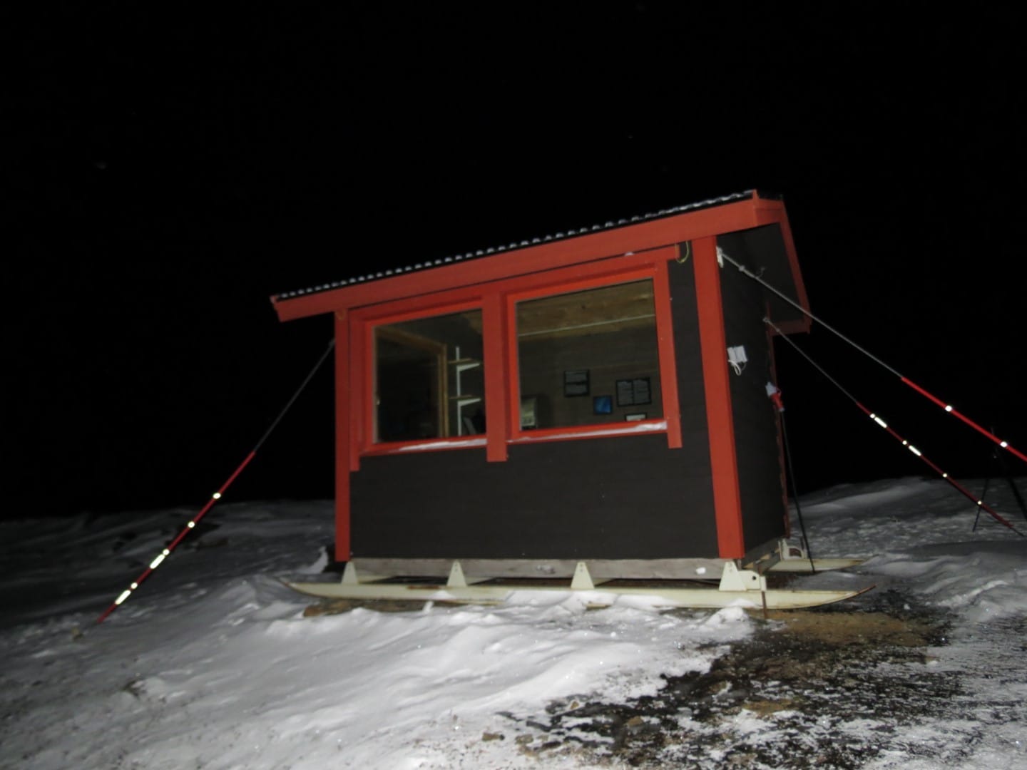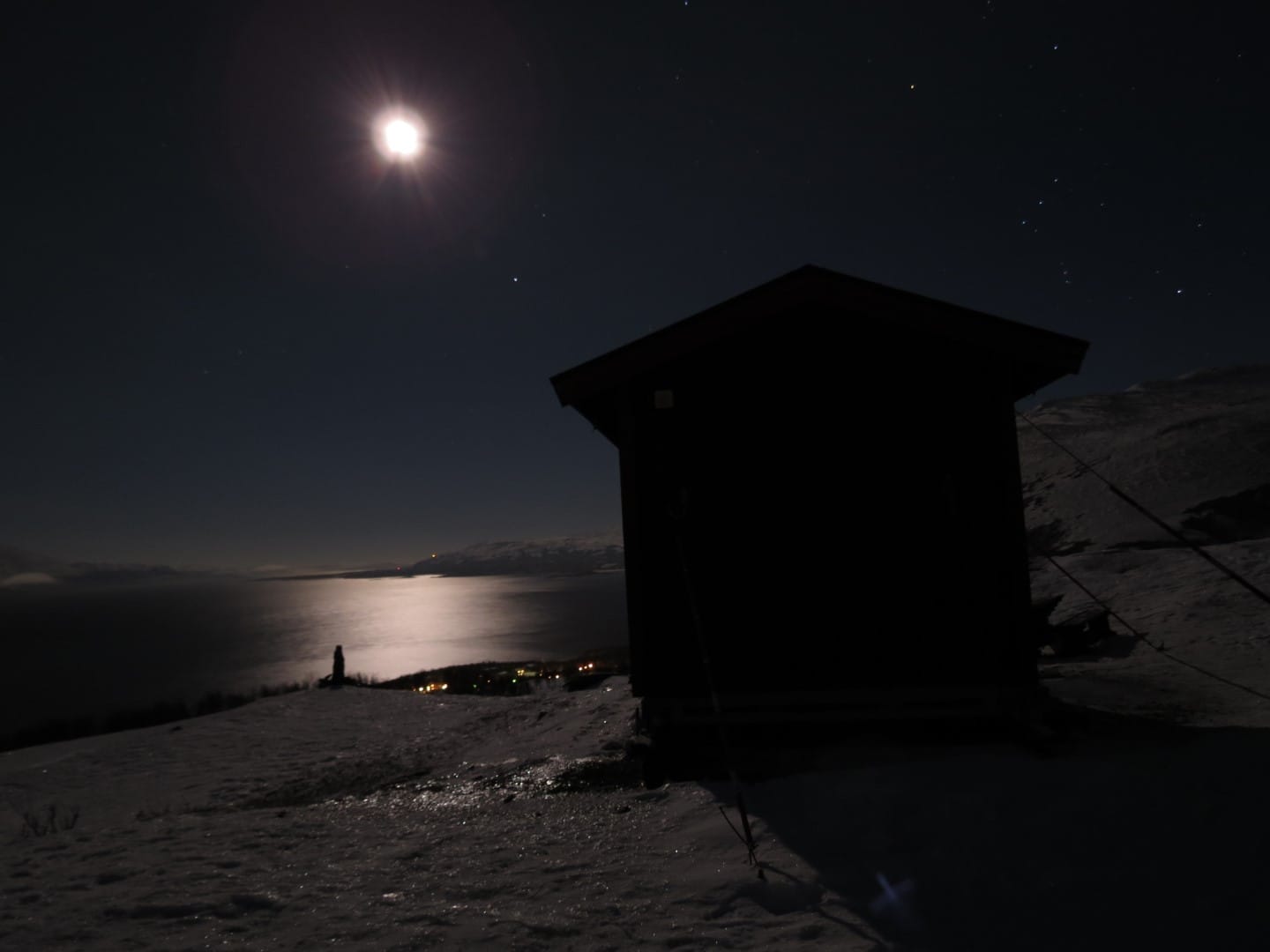 Einen Tag später allerdings ist die Sicht noch viel besser. Ich laufe die Skipiste in Björkliden hoch und verbringe den Abend an einem kleinen Platz, wo man wirklich eine gute Sicht hat. Und es ist fantastisch, wenn der Himmel grün und violett und sogar ein wenig rot leuchtet, was eher selten der Fall ist. Ich geniesse meine ersten wirklich intensiven Nordlichter (siehe Galerie unten). Glücklicherweise gibt es auch hier oben eine kleine Hütte, die sogar beheizt ist. Es ist niemand hier und ich kann mich ausbreiten und gemütlich zu Abend essen.